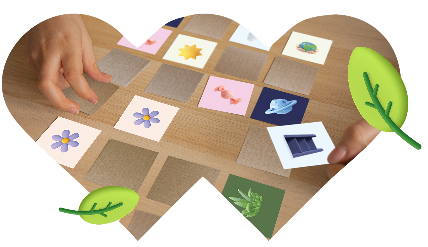 Leg de kaarten met de afbeelding naar beneden op tafel en schud ze. Pak om de beurt twee kaarten. Als ze bij elkaar passen, mag je ze houden. Zo niet, leg ze dan terug en is de beurt aan de ander. Degene die de meeste paren verzamelt, wint!